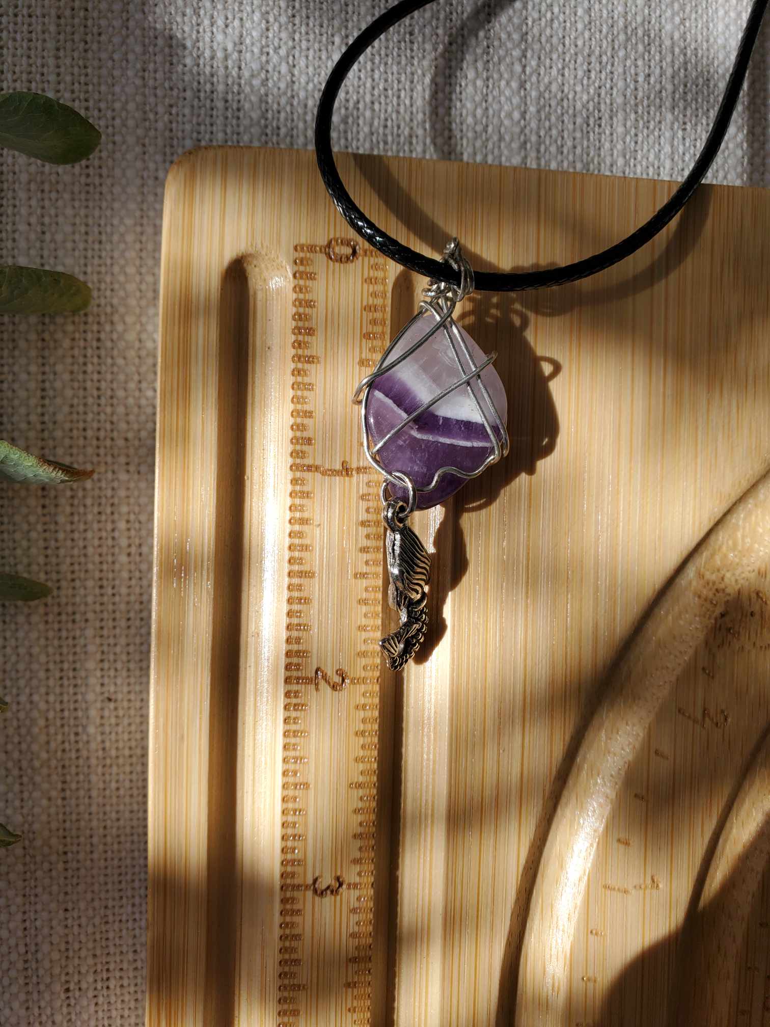 Genuine Crystal, Hand Wrapped, Plated Wire, Silver Plated Brass Charm, Includes Adjustable Black Cord