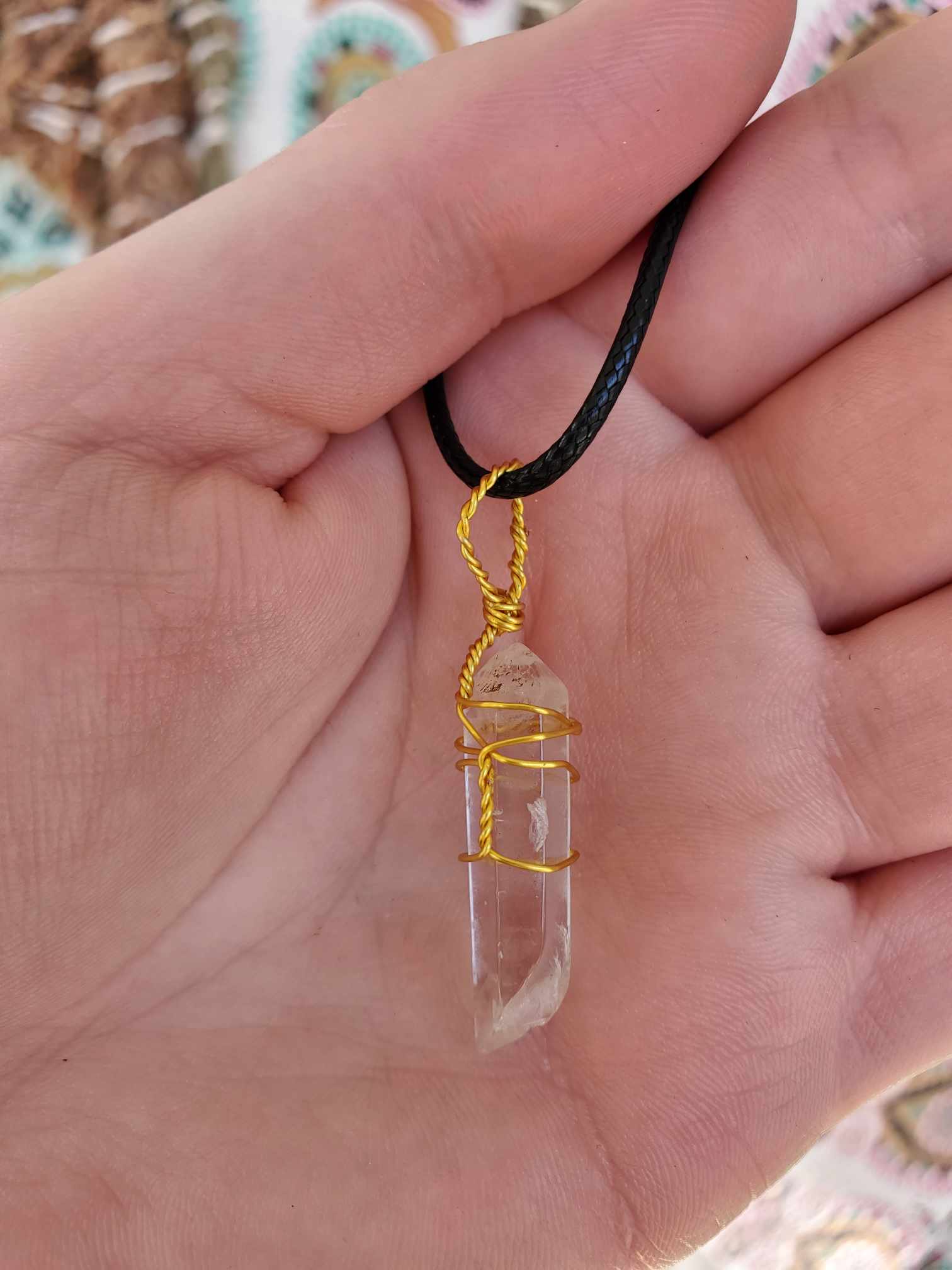 This double tip quartz pendant offers a cleansed, refreshed feeling to the wearer while adding a layer of white light to the auric body. Clear quartz will also accelerate the properties of any other crystal the wearer has on.