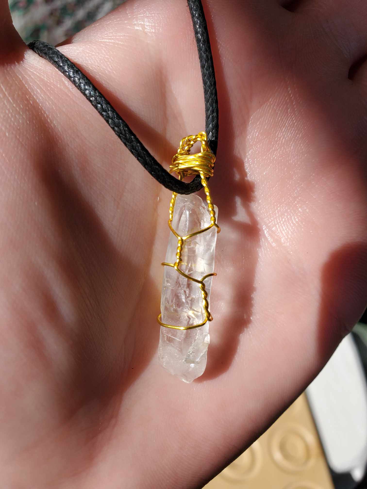 Genuine Crystal, Hand Wrapped, Plated Wire, Includes Adjustable Black Cord