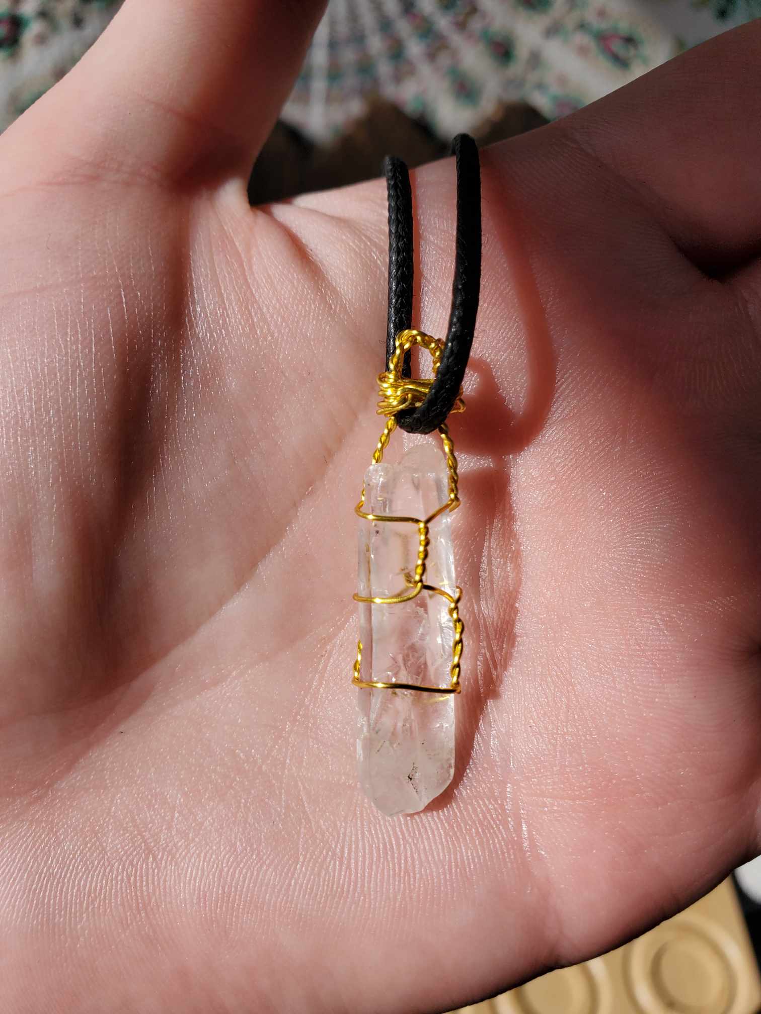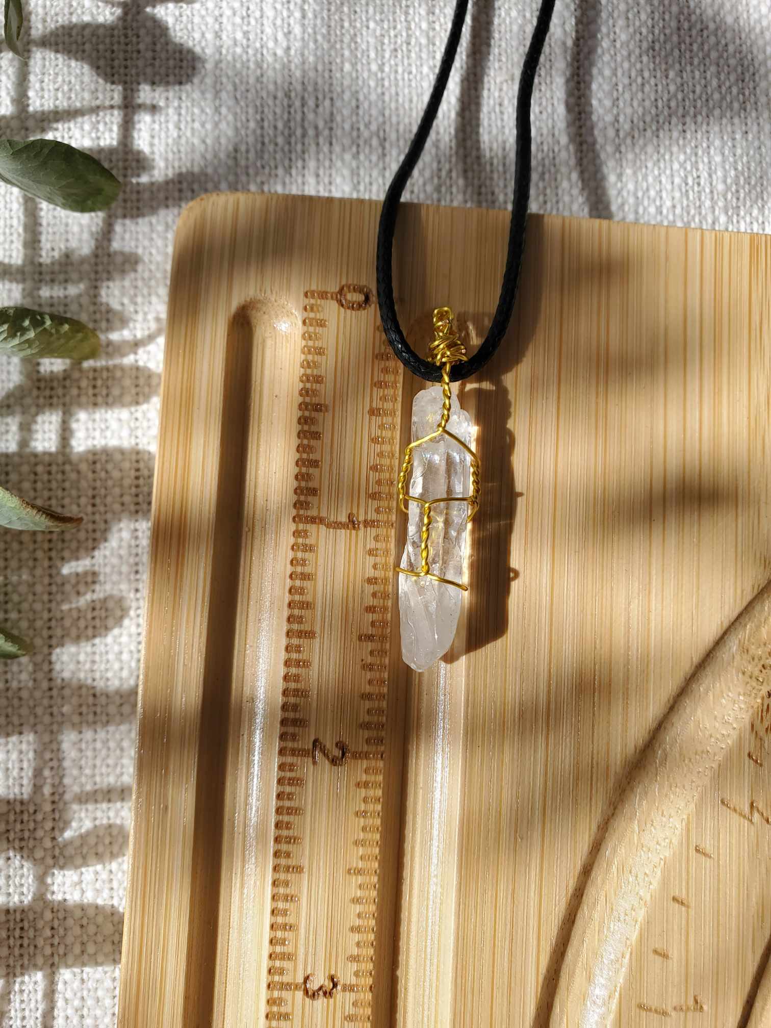 Gorgeous, cleansing pendant to stay balanced, focused, and full of light energy. Clear Quartz will accelerate the powers of any other stones it is paired with. DOUBLE BALE - can be worn different ways / on a different sized chain easily.