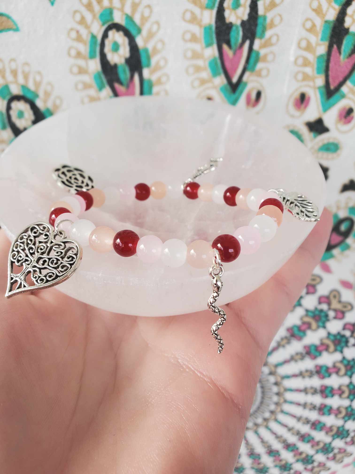Snakes bring in the kundalini aspect & flow, with the tree of life reminding us of our roots. The flower of life is also a very beautiful feminine symbol.