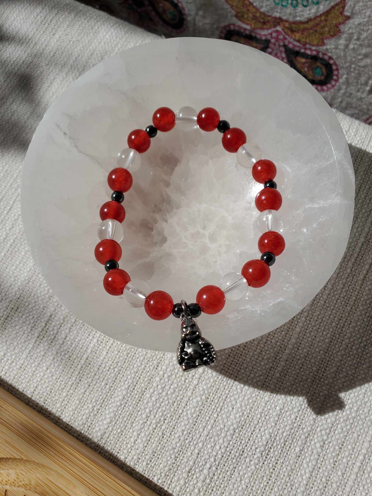 Jade, Clear Quartz, and Hematite with Buddha Charm