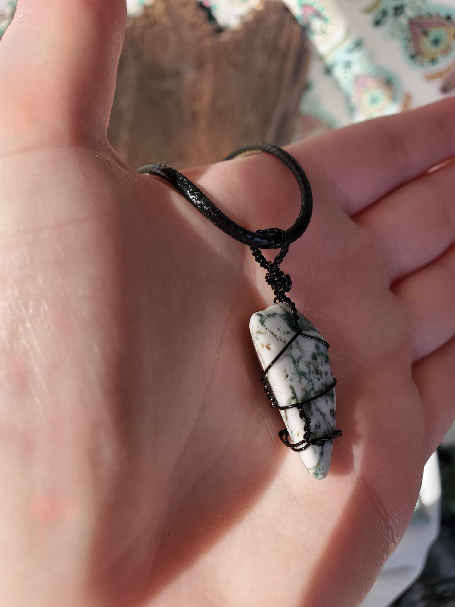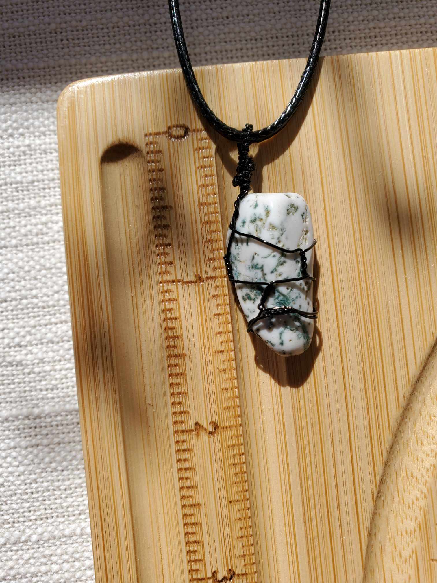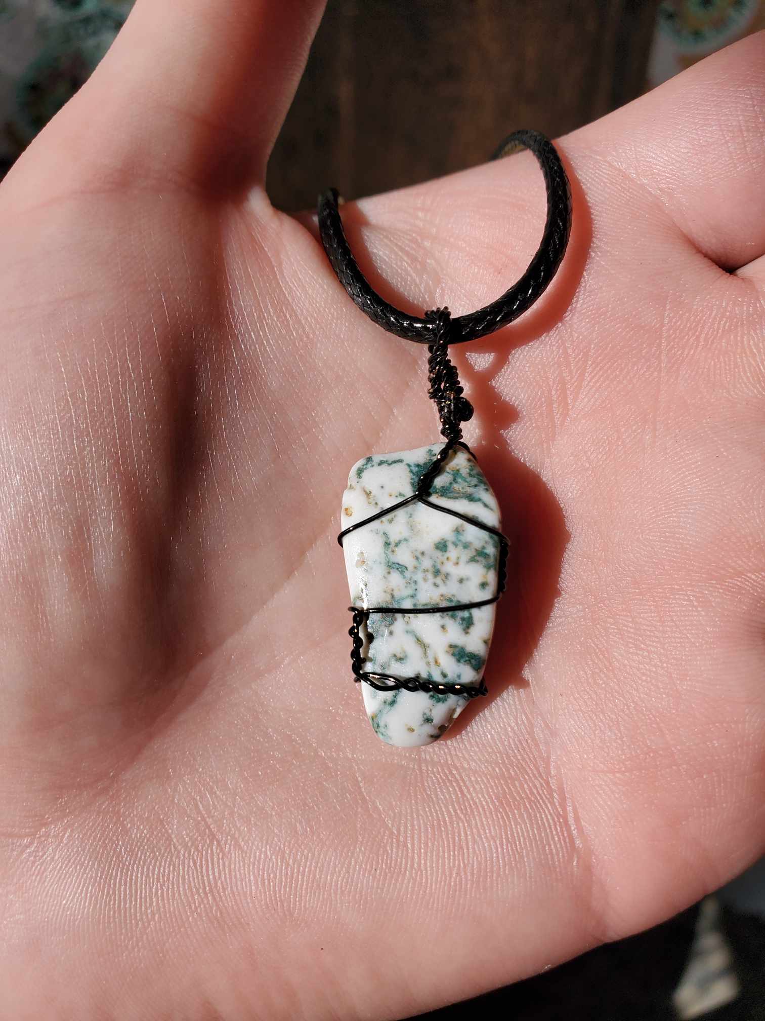 Moss Agate in Black Wire