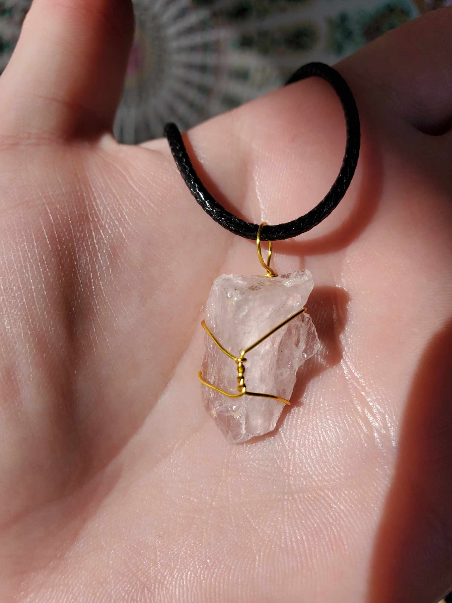 Genuine Crystal, Hand Wrapped, Plated Wire, Includes Adjustable Black Cord