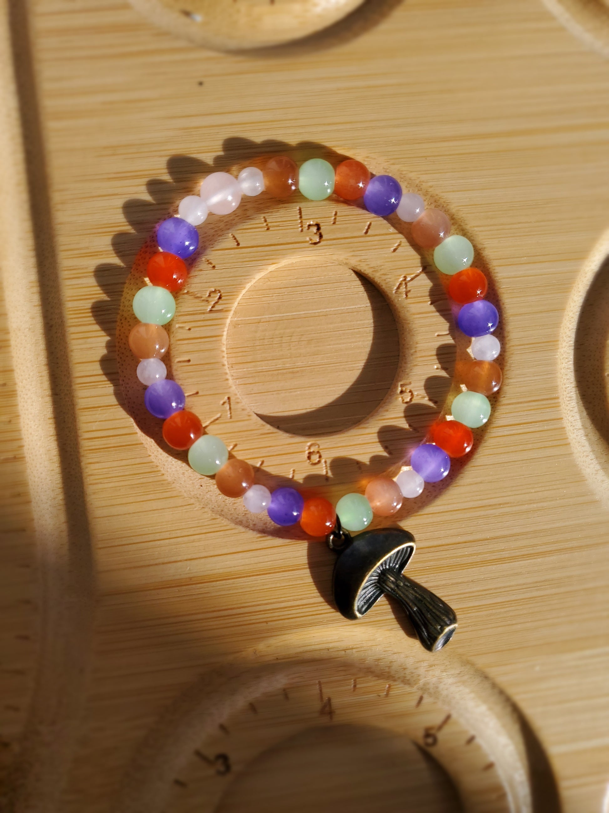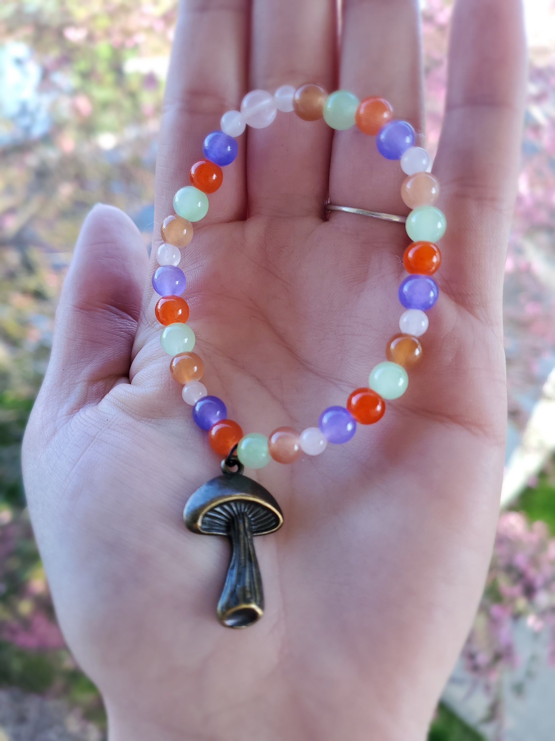Adorable mushroom friend - has small rose quartz accent beads :)