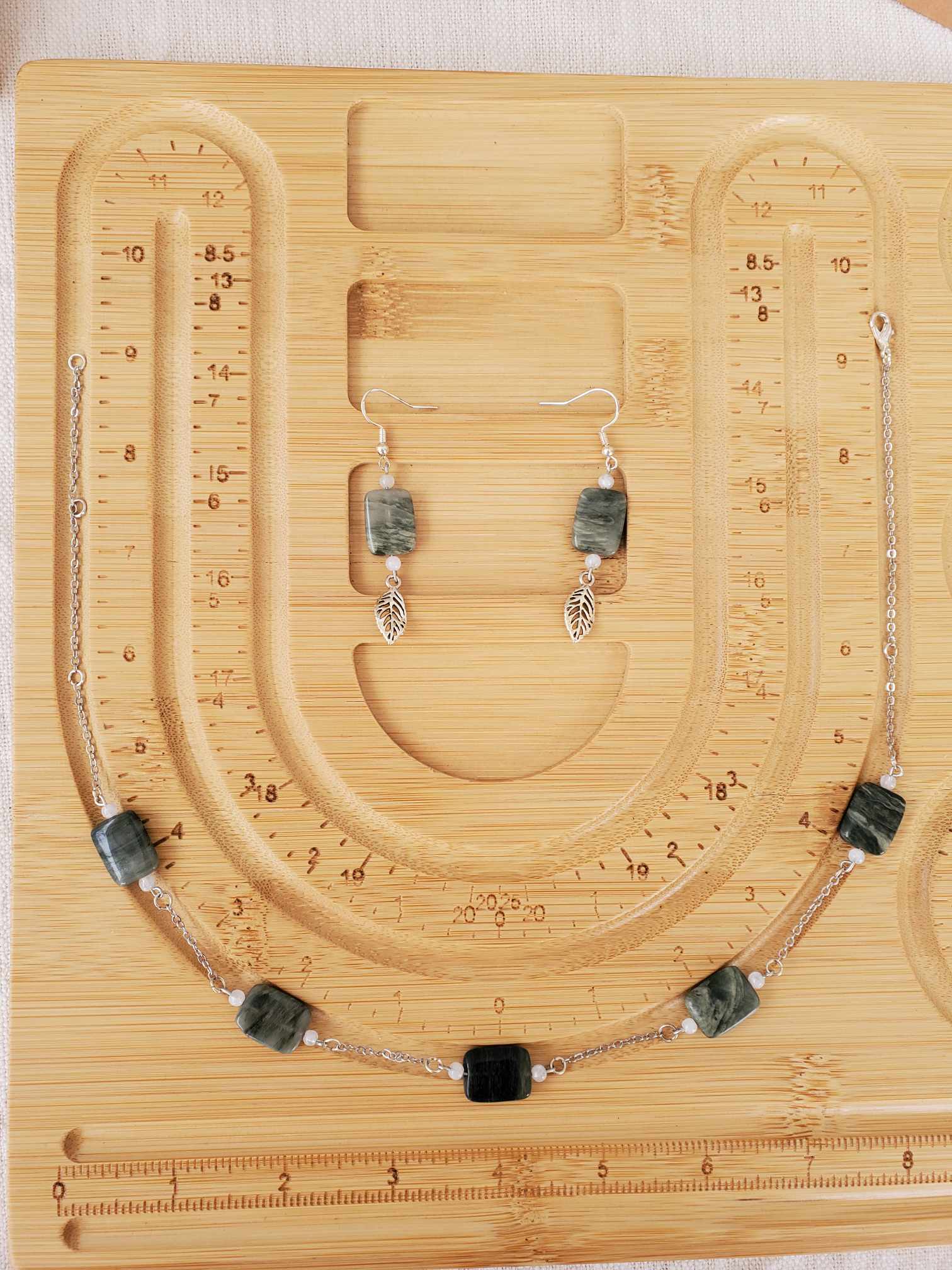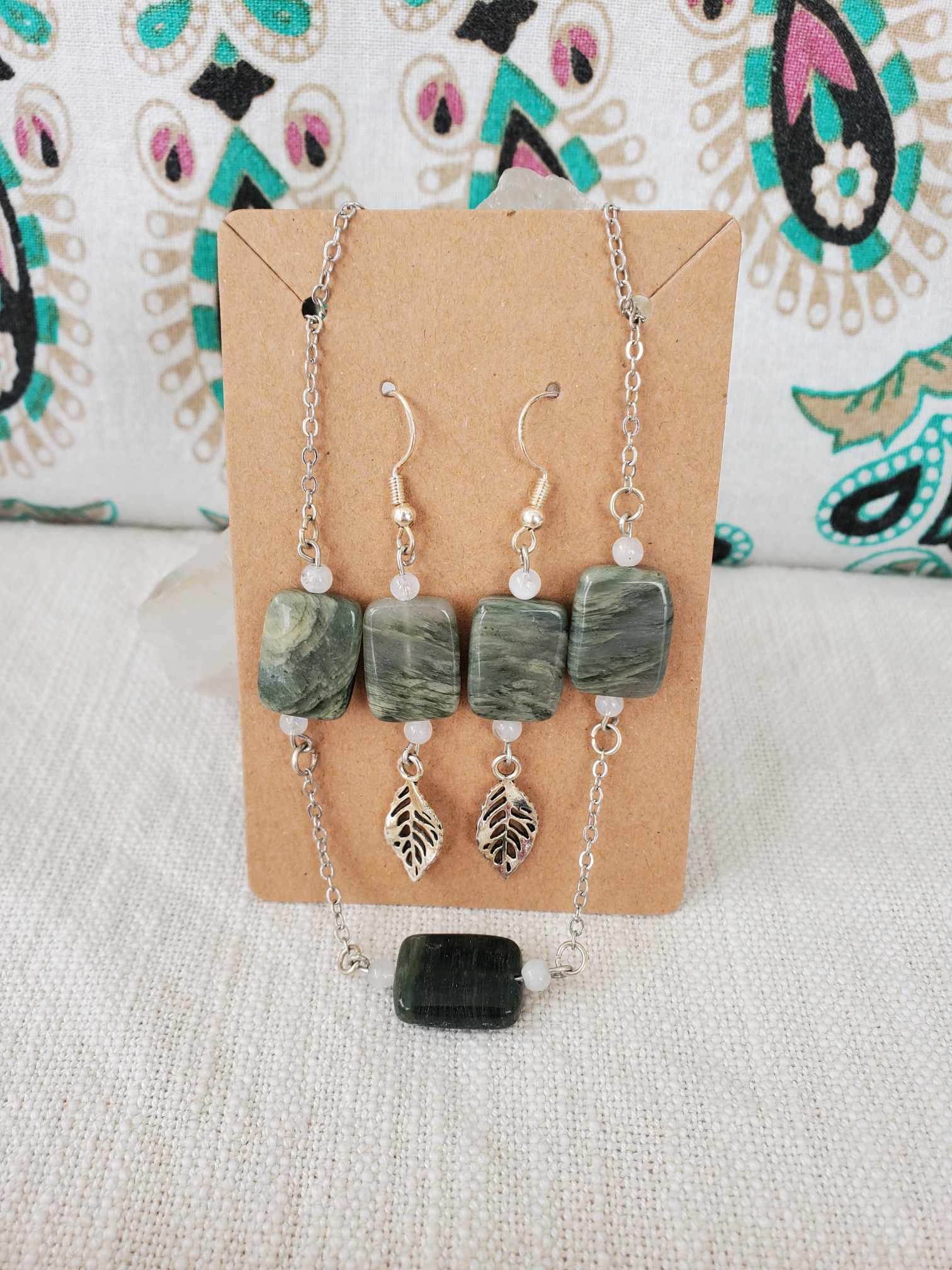 Seaweed Jasper x Moonstone - Earring & Necklace Set