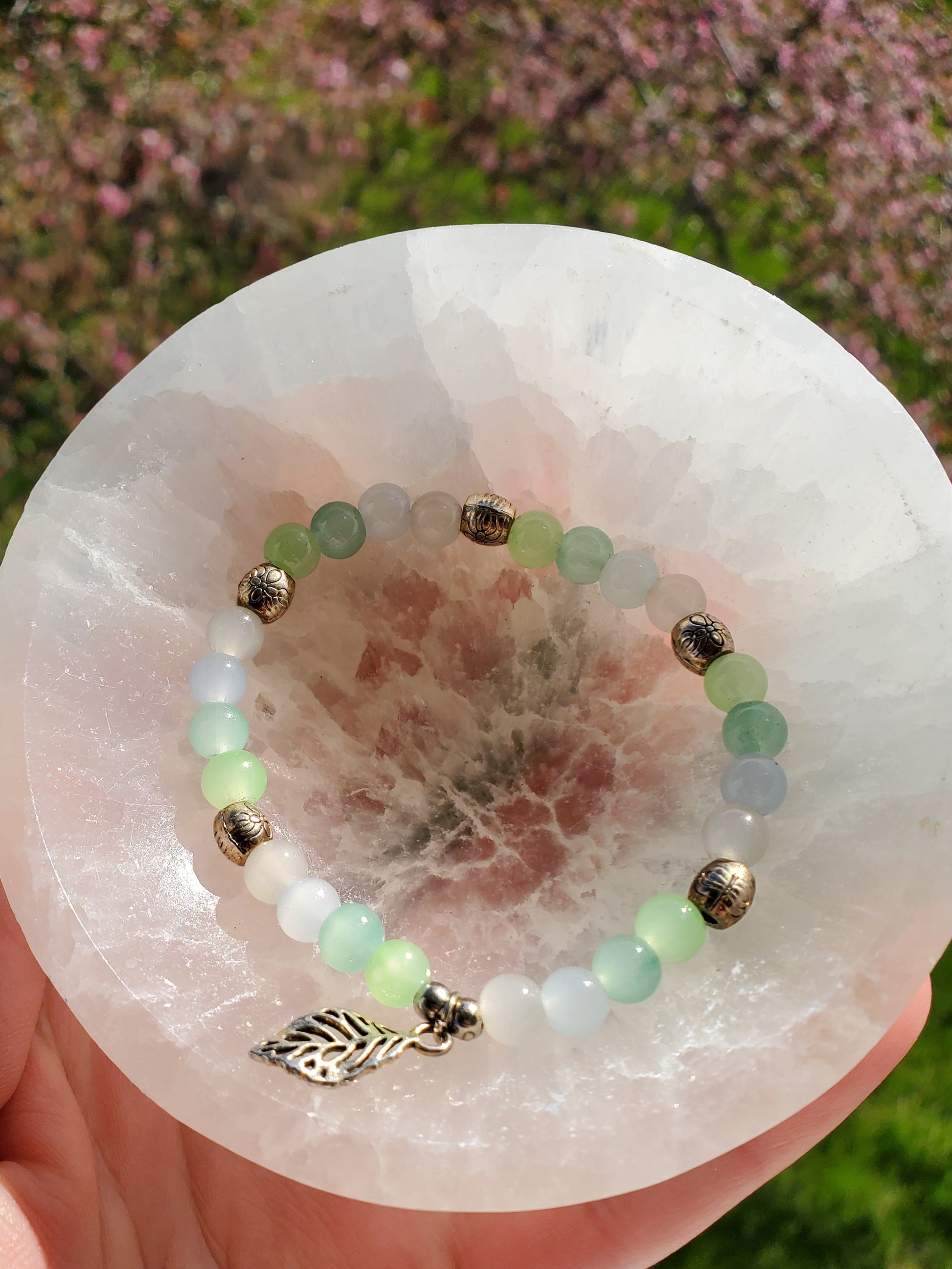 Double Strung, 6", Glass Beads, Plated Brass Charm